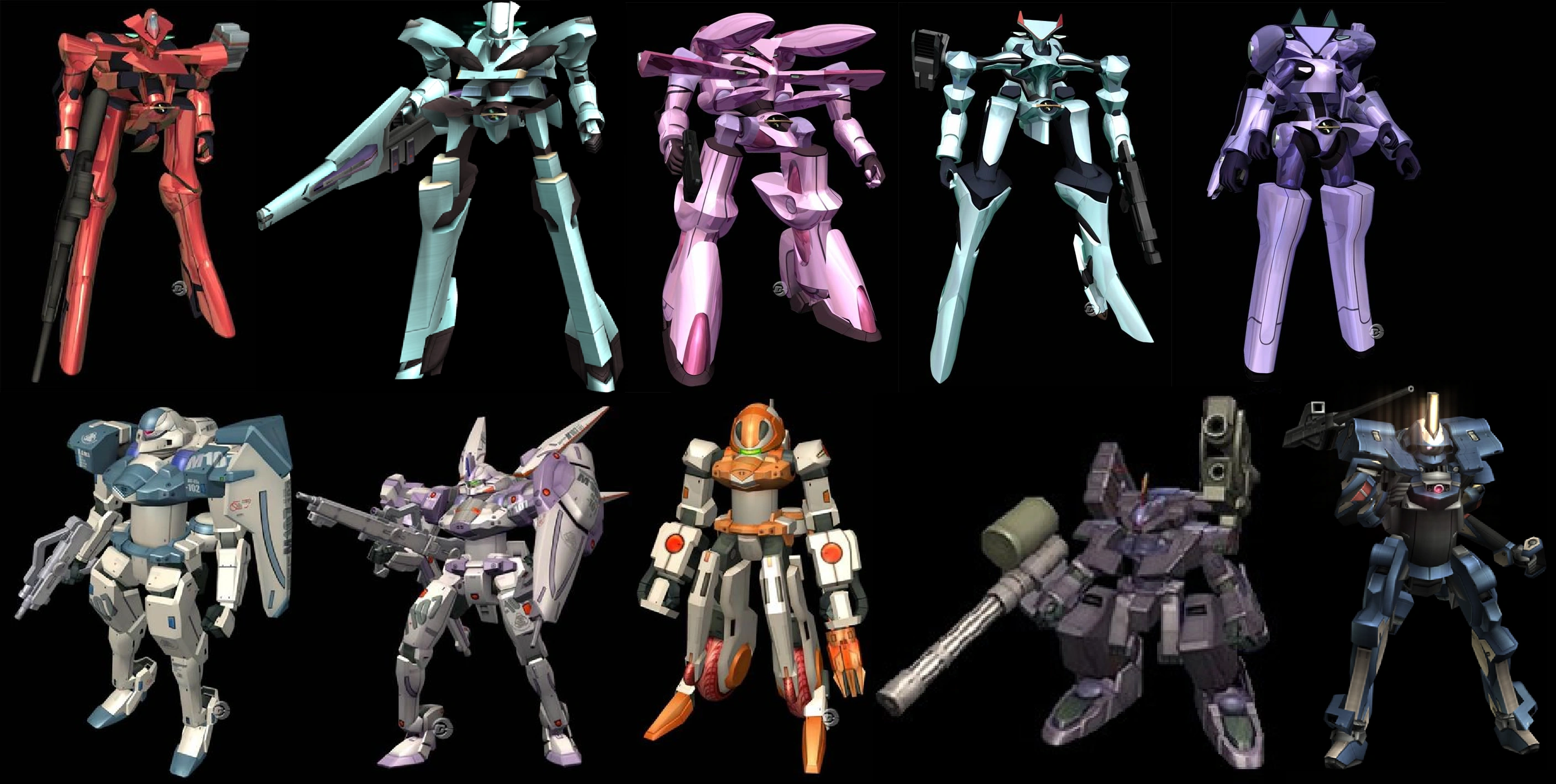 A.G.W.S come in various forms, which are dictated by their functions. The Federation military's standard issue A.G.W.S. are all fitted with standardized chassis which can be interchanged and customized with armaments and equipment depending the uniqueness of the situation. Military A.G.W.S. are normally built by the enigmatic Hyams Group. Vector Industries' A.G.W.S. are not mass produced and are only available to select buyers. Only certain government Special Ops. units, certain divisions of the military, and wealthy companies or organizations like the Kukai Foundation have access to these models. People like 1st Lieutenant Virgil, Shelley and Mary Godwin, and Jr. are seen piloting A.G.W.S. several times over the course of the game. Protagonist Shion Uzuki and others also have A.G.W.S. available to them in battle but are not seen piloting them in the actual storyline sections of Episode I. A.G.W.S. are not used by the player in Episode II.
