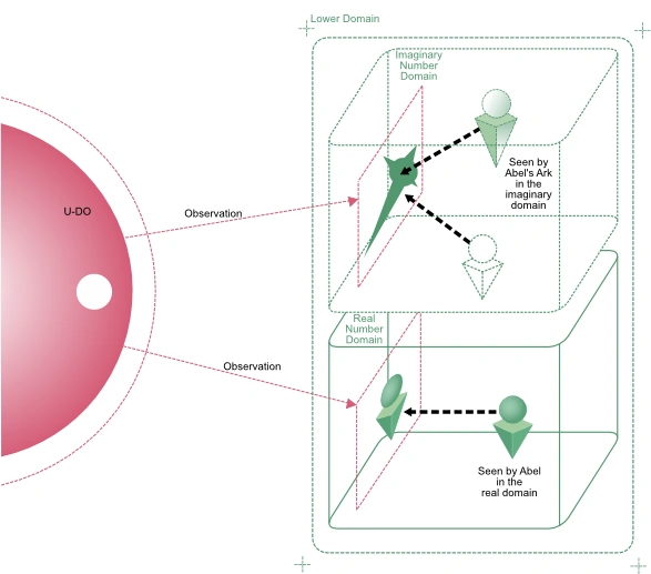 As the Ark is from the Imaginary Domain, it does not exist physically, leading it to be percieved as a massive Gnosis. Since U-DO exists in a separated part the universe (the "Upper Domain"), it depends on Abel's Ark and Abel to observe the other half, which consists of the physical bodies and consciousness of humanity (the "Lower Domain").