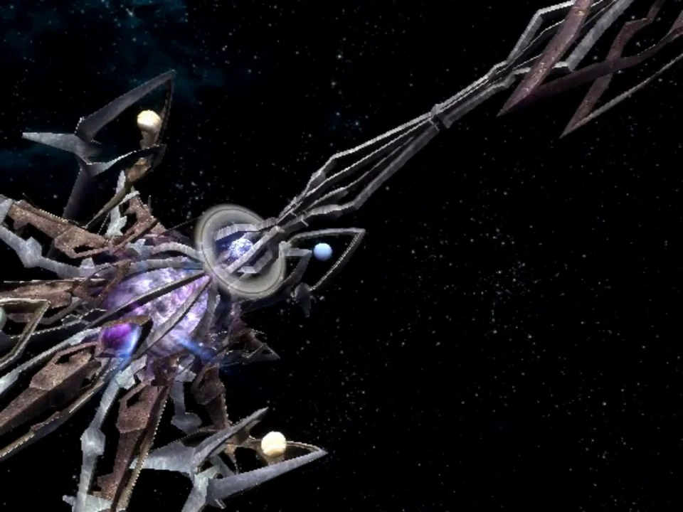 Its primary shape resembles a crystalline tree or chandelier. The database claims that the ringed object in the center of its structure is not a planet, but an energy field.