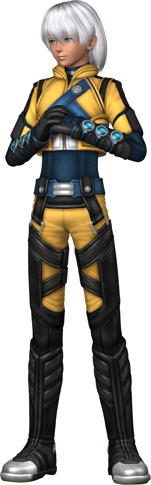 After saving the Elsa by holding open one last U.M.N. gate to allow them to escape the shockwave of the dimensional shift, he is last heard speaking to KOS-MOS as she drifts through space. His last words: "I guess both you and I still exist in this world, after all. As long as people... as long as the universe desires it, we will continue to exist. We haven't finished what we have to do yet. So, until then, sleep well, KOS-MOS."