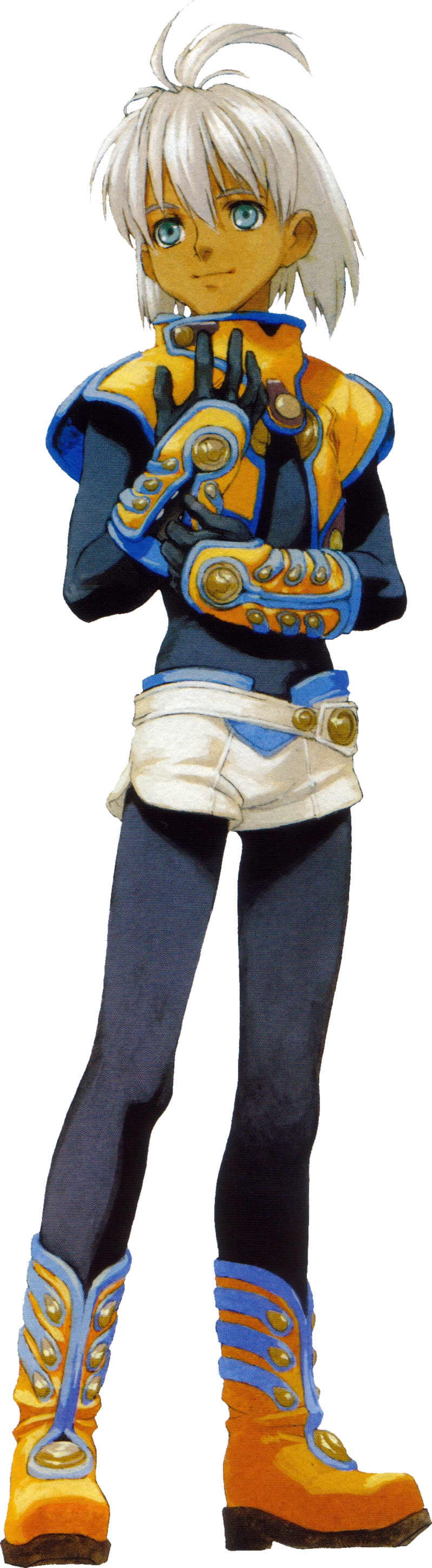 His techs in Episode I all have a reference to angels and heaven. He is the only party member to learn an ability over lvl 30, which he gains at lvl 50. This requires an ally to be KO to perform.