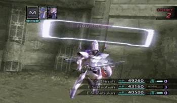 E.S. Gad is the E.S. of Richard, manufactured by Hyams Group. It is seen in Episode III. It seems to be an upgraded A.M.W.S. Pilum from Episode II, equipped with a Vessel of Anima as its energy source. Without a Vessel of Anima, it is known as P.S. Gad.