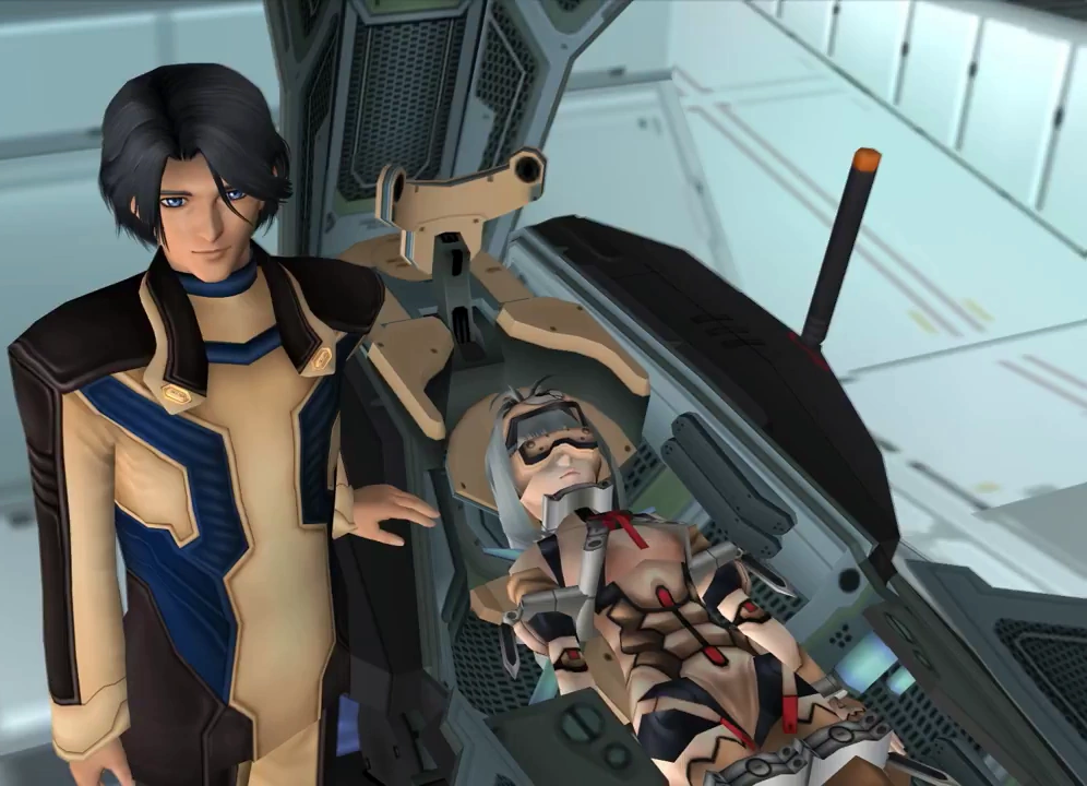 In the second flashback, Kevin wonders if KOS-MOS has a heart and emotions.[2]