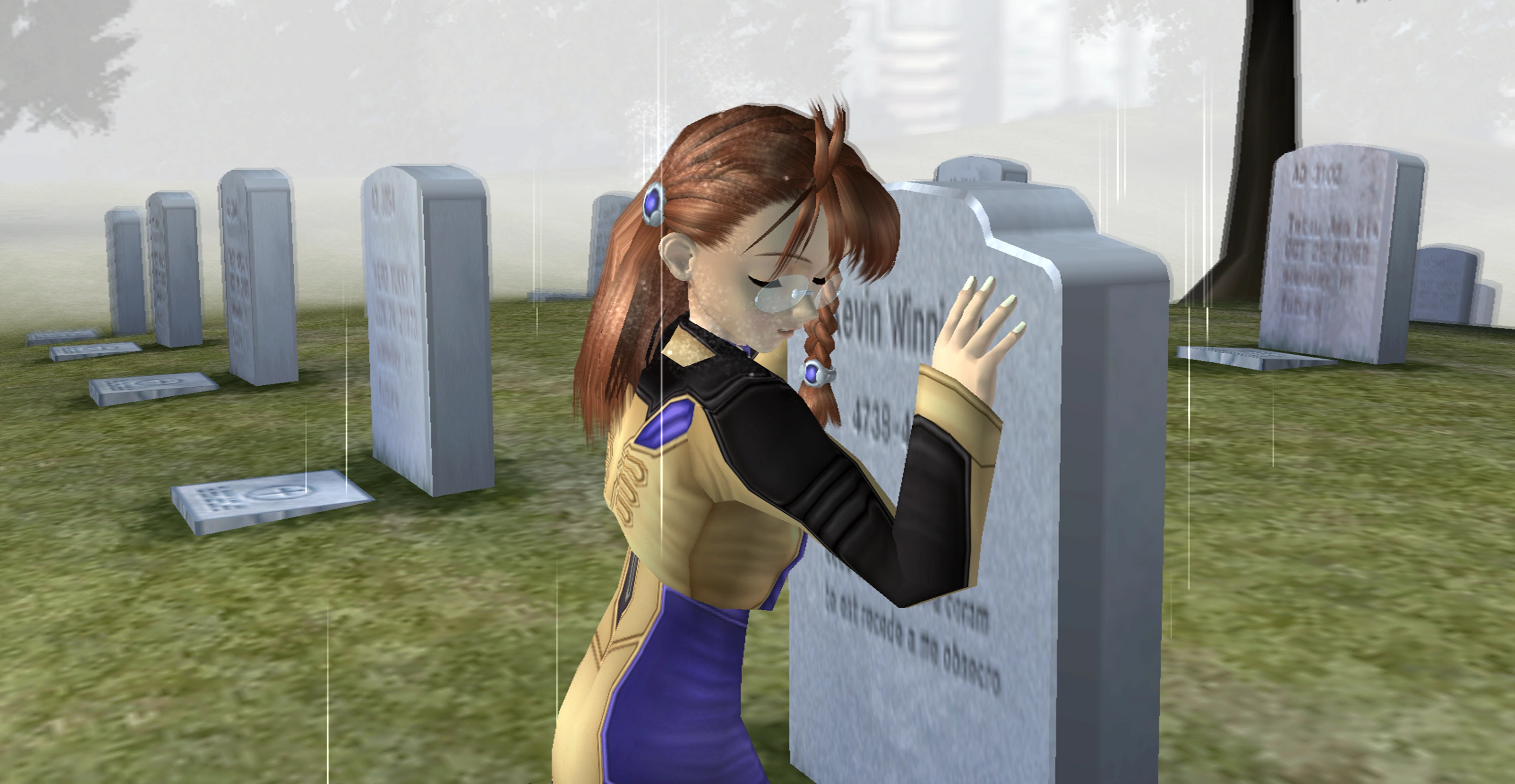 Shion resting against Kevin's grave.