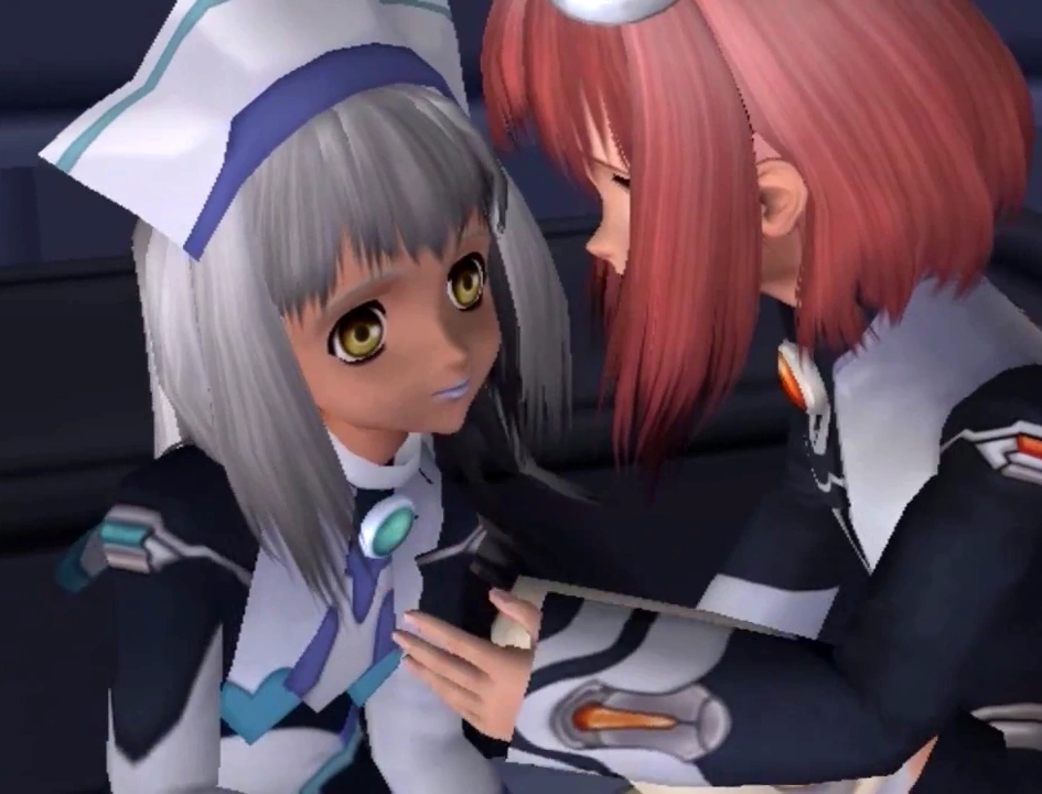 She used to be Albedo's personal assistant Realian who escaped his custody and disguised herself as a new model 100-Series Observational Realian unit and snuck about the Galaxy Federation cruiser Woglinde.