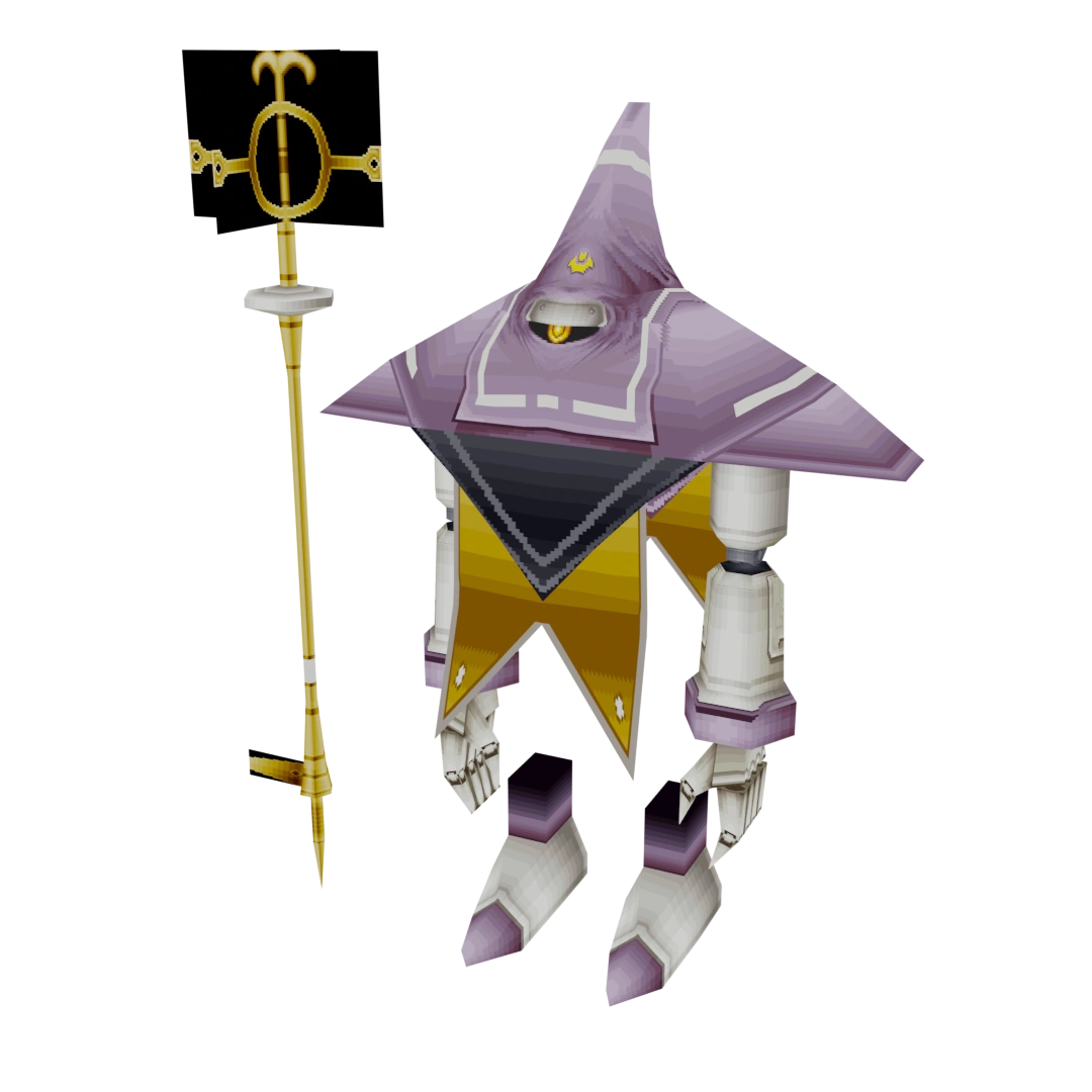 A thin floating Gear that attacks with a magic wand and powerful Ether skills. It has a pair of floating AEROD-like wings and appears both in the game's final dungeon and the Nortune Battle Arena.