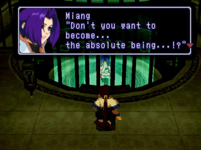 Eventually Fei's party manages to destroy Merkava, but Deus's completed form emerges from it. After a long battle in Deus's core, Fei's party defeats Deus.