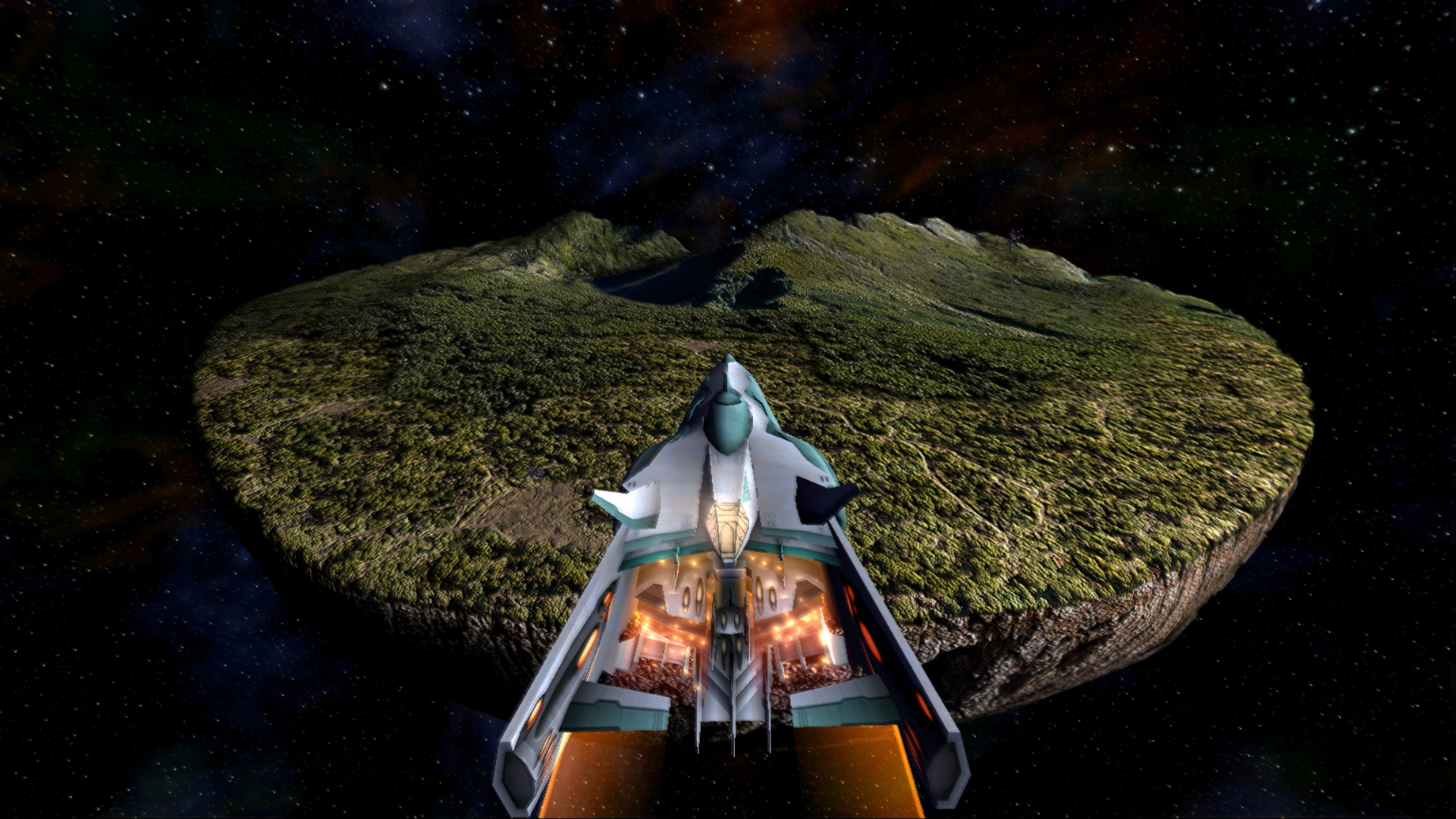 Resembling a valley of mountains and forests of approximately seventy kilometers in diameter, with a hemispherical bottom half, it appears as if it has been literally "scooped out" of Lost Jerusalem/Earth. Despite its abnormal location, there is consistent 1G gravity, breathable air on the surface, as well as a set of ancient ruins. Deeper underground lies a labyrinth of caves, stone passageways, an elaborate ancient temple, and abundant Gnosis. In the depths of this subterranean temple is a cross and burial site which looks exactly like the resting place of KOS-MOS's consciousness that appeared in the Encephalon dive from Xenosaga Episode I.