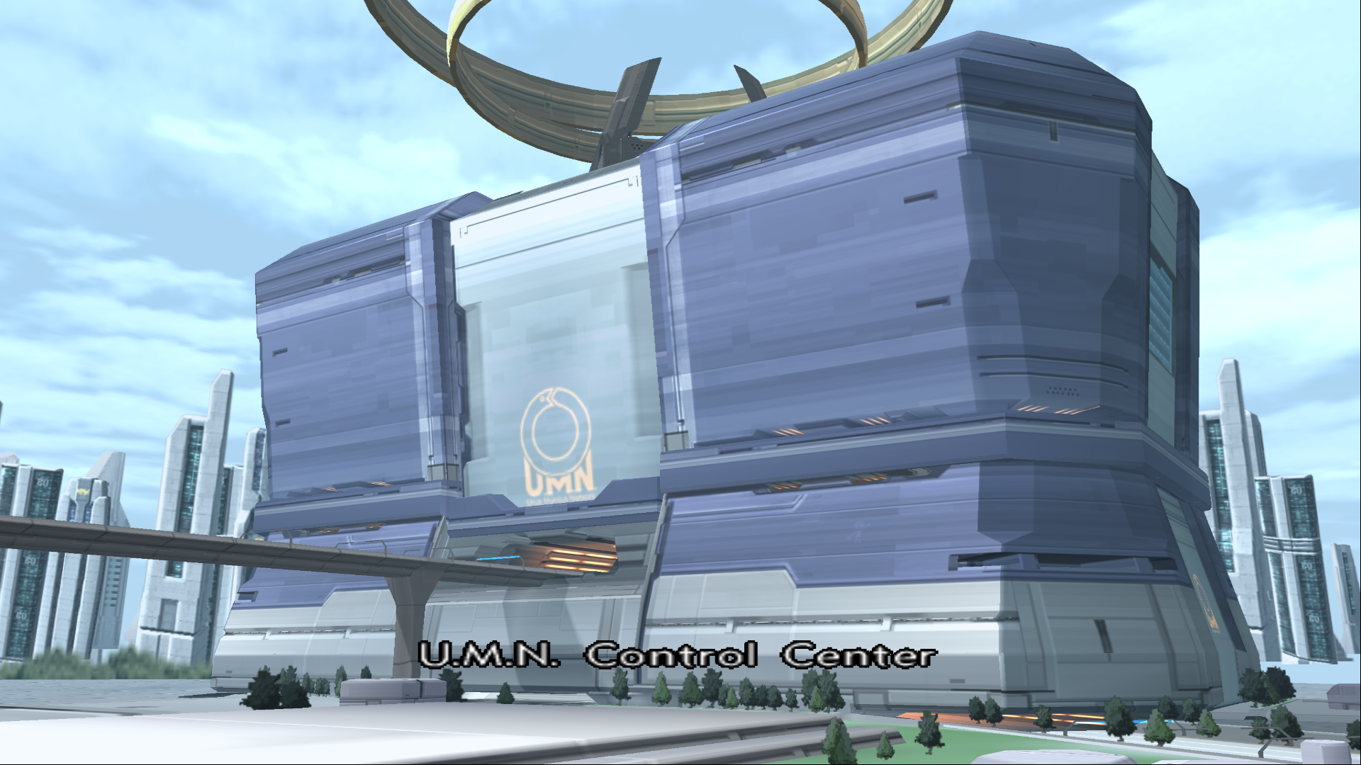 - U.M.N. Control Center - The facility that controls the U.M.N. transport gate on Second Miltia. It was once a transfer-gate control facility owned by Vector Industries. Even now, Vector provides 98% of the center's infrastructure and resources. All facilities related to the U.M.N. are essentially under the jurisdiction of the U.M.N. Administration Bureau. Since they are in a position where they can hold all of the galaxy's information, their statements carry weight with the central government.