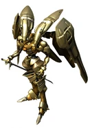 Wyvern is a golden Gear with long wings and a tail-like fin on its back. Styled after its mythical namesake, the Wyvern is piloted by Gebler Commander Kahran Ramsus. It wields a long sword and is very fast and agile, normally attacking multiple times in a row, much like its pilot.
