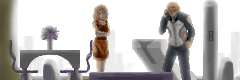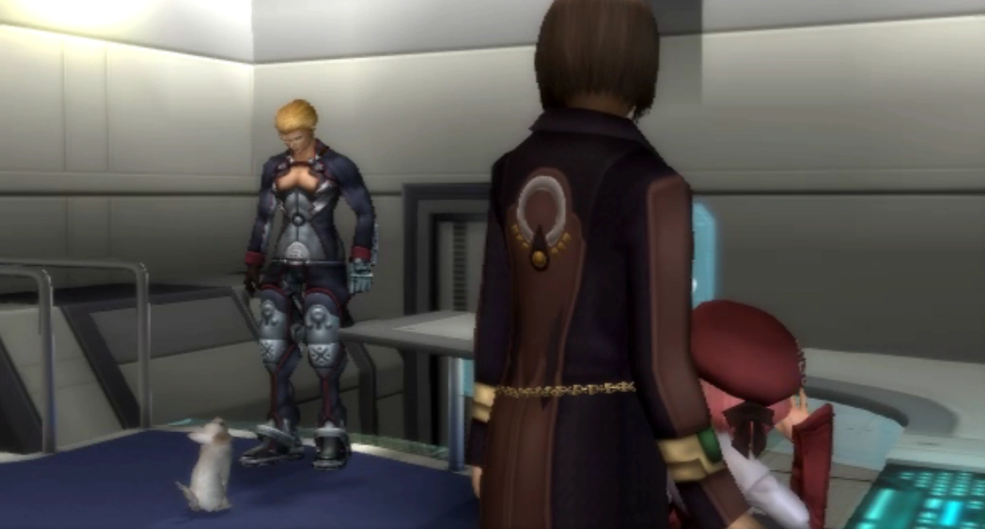 After the prologue, the Elsa arrives safely on Second Miltia, and the party disembarks. In the spaceport, Ziggy reports on the status of his mission during a video call with Juli Mizrahi, who has also recently arrived on Second Miltia. Juli instructs him to continue the assignment by accompanying MOMO to the U.M.N. Control Center, where MOMO is to undergo analysis. During the call, Juli addresses Ziggy by his former name, Jan Sauer. He corrects her, stating that he is "currently Ziggurat 8." Ziggy then relays a message from MOMO, who has asked Ziggy to tell Juli that MOMO is looking forward to seeing her. Juli reacts with discomfort, and the call ends on an awkward note, with an interjection from Jr., who has been eavesdropping on their conversation. Ziggy advises Jr. that "[e]avesdropping is not a very admirable pastime." Undeterred, Jr. asks why Ziggy hasn't transferred to a carbon-based Realian body to replace his older cybernetic frame. Ziggy explains that he does not wish to prolong his lifespan. Jr. notes that MOMO would be happy if Ziggy lived longer, but he respects Ziggy's decision.